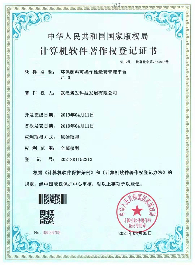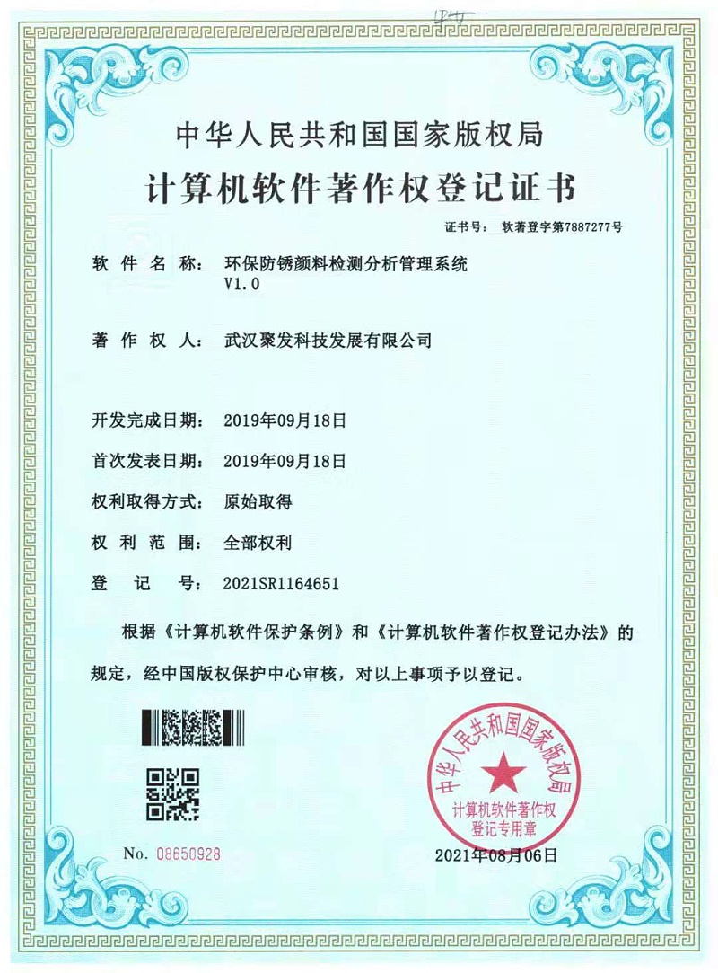 武汉聚发科技发展有限公司始建于1991年,现在已经成为一家综合型颜料企业,产品涵盖范围较广:包括氧化铁颜料系列,铅铬黄系列,钼铬红系列,铁钛粉防锈颜料系列,磷酸锌,三聚磷酸铝,美术绿,大红粉和酞菁蓝等产品。 公司较早通过了ISO9001:2015管理体系认证,管理严格效率高,技术力量强大,生产设备成熟,检验仪器齐全,科研人员努力开发新产品,致力于颜料品质的提升,又专注于环保颜料和水性颜料的突破,紧随时代的发展,持续做合适的产品投放市场。